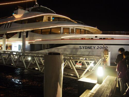 柄にもなく、ディナークルーズです。船はSydney2000という豪華客船。3階建てで、4Fは展望デッキ。この船に何人乗れるかは判らないけど、日本人だけで60人も予約があったと入り口で言われました。確かに、このディナークルーズだけは日本から予約できた。故に…