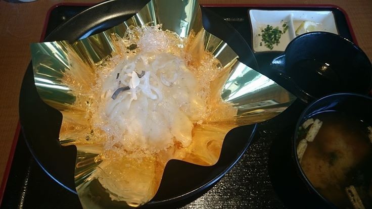 フグといえば下関なのだけど、そして冬のはずだけど、ここ門司港でもフグが頂けました。フグ丼。